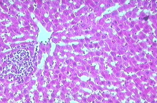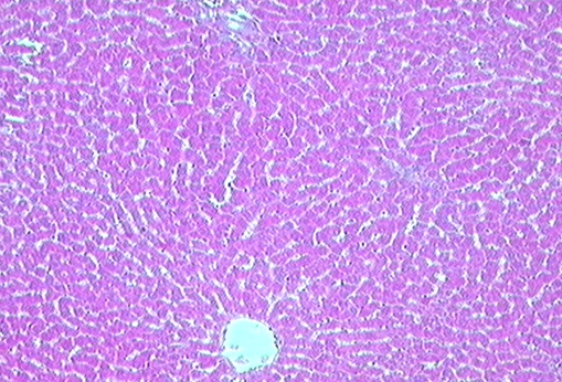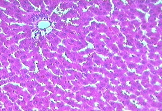 Histological observation of liver tissue of the normal animal (group I) showed a normal liver architecture of hepatocytes since they were well arranged without any alteration at central vein. In (group II) hepatocytes showed severe and diffuse degenerative changes mainly hydropic and fat degeneration.