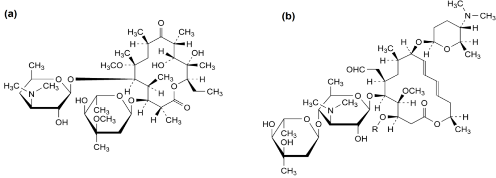 Fig. 1: Molecular structure of (a) clarithromycin and (b) spiramycin [8]