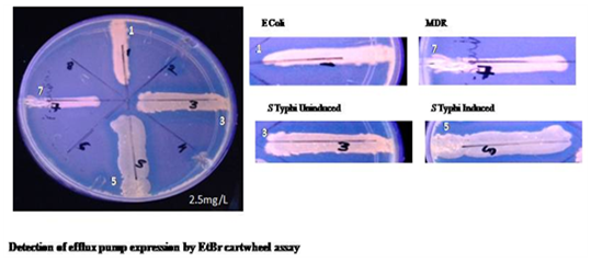 Typhi over-expressing efflux pumps, as indicated by EtBr cartwheel and semi-automated fluorescent assay