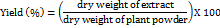 Table 1: It shows the Yield of CruE and fractions of B. glabra Jacq.