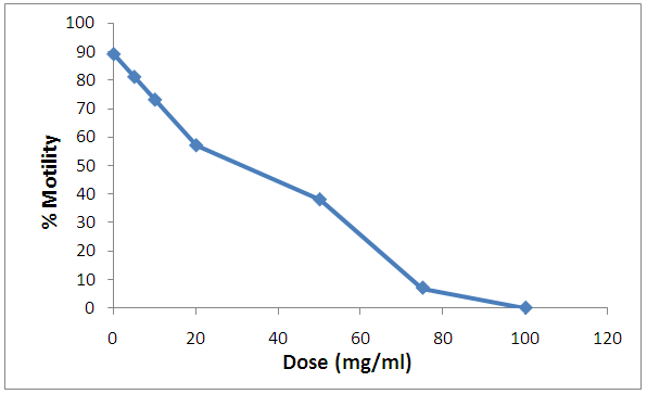 Fig. 1: Effect on percent motility of 1 million human sperm after exposure to different doses of Ensete superbum seed extract for 20s.
