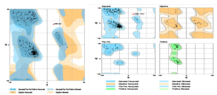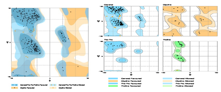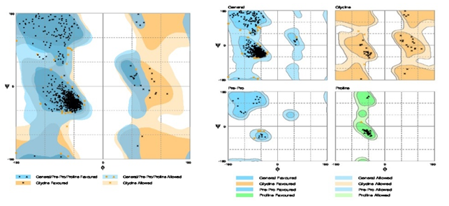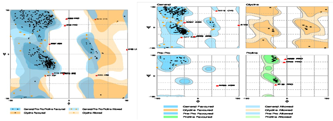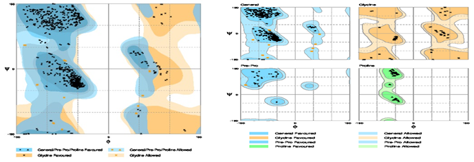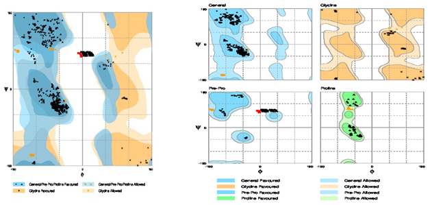 Table 2: The rampage stereochemical quality of receptors by analyzing residue geometry and overall structure geometry