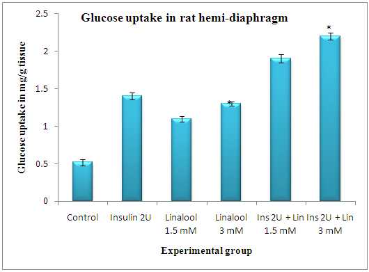 Fig. 2: In vitro glucose uptake in rat hemi-diaphragm.