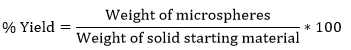 The microspheres were characterised for different flow properties such as angle of repose, carr’s index and hausner’s ratio [20, 21].