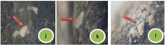 Fig. 2: Potato discs treated with aqueous extracts of suspended particulate matter in the presence of Agrobacterium tumefaciens (g–l)