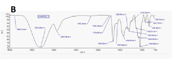 The suspension of the test material, 1-2 weight % (S) was incubated in ddH2O took after by hydration for 12 h at 25 °C. The hydrated scattering is then centrifuged for 2-5 min at 10,000 Revolution per Minute (RPM) and filtered. The filtrate was dried at 105 °C for 6 h and cooled to a consistent weight (W2). The insoluble amount was figured as:
