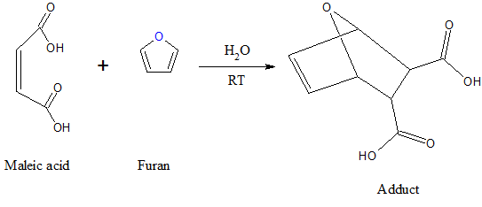 Conventional method involves refluxing of furan and maleic anhydride in benzene solvent. The procedure given below involves use of water as a solvent and the reaction is 100% atom efficient.