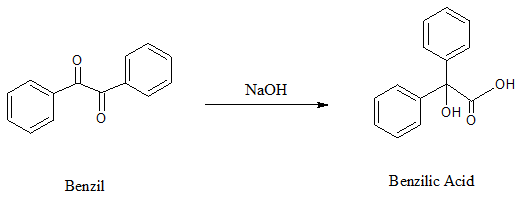 This reaction demonstrates disproportionation, oxidation-reduction as well hydride shift-a process very important in many biological reactions and the conventional procedure involves the use of organic solvents while the underlying reaction procedure involves use of water for reaction work up, minimising the environmental pollution.