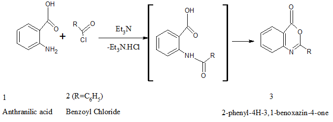 The progress of the reaction was examined by thin layer chromatography using n-hexane: ethylacetate (6:4) as a solvent. The reaction mixture was cooled and poured into ice cold water. Thus, the solid obtained was filtered, washed with 5% NaHCO3 solution, dried and recrystallized from ethanol yielding product having a melting point 116-118 °C [54].