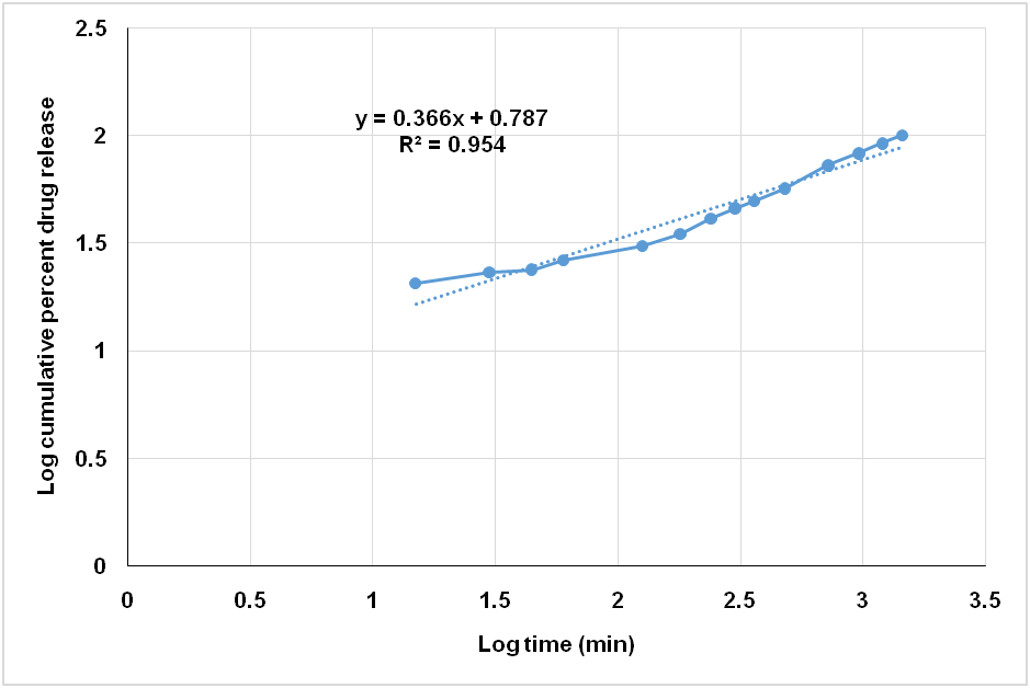 Fig. 13: Korsmeyer-peppers release kinetics of optimised formula (F2)