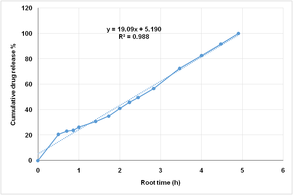 Fig. 14: Higuchi release kinetic of optimised formula (F2)