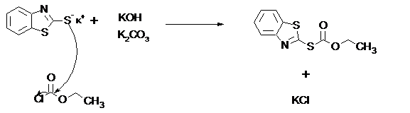 After the mixture of 2-MBT (5 g, 0.03 mole), Potassium Hydroxide (1.6 g, 0.03), anhydrous potassium carbonate (3 g, 0.03) in 20-30 ml absolute ethanol has been heated and stirred under reflux for 30-45 min, it was cooled to room temperature. The appropriate (methyl, ethyl, Isobutyl) chloroformate (0.03 mol) was added dropwise with continuous stirring then it was heated to 30-35 °C for 1-2 h. After the mixture has been cooled to room temperature, it was poured into 100 ml iced water, the precipitated product was filtered by buchner funnel and washed with a little amount of cold distilled water. Finally, the white crystals formed were recrystallized from ethanol–water, the final products AZ7, AZ8, and AZ9.