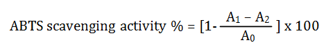 Where, A0 was the absorbance of the control (without sample), A1 was the absorbance in the presence of the sample and A2 was the absorbance without ABTS+).