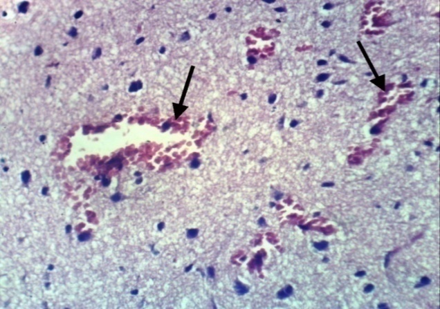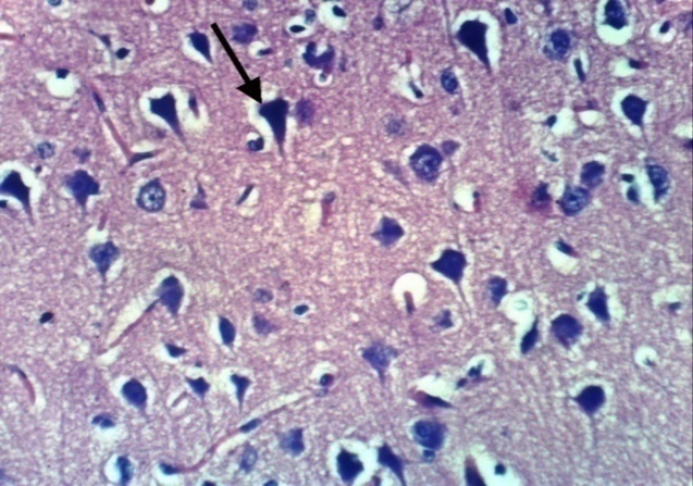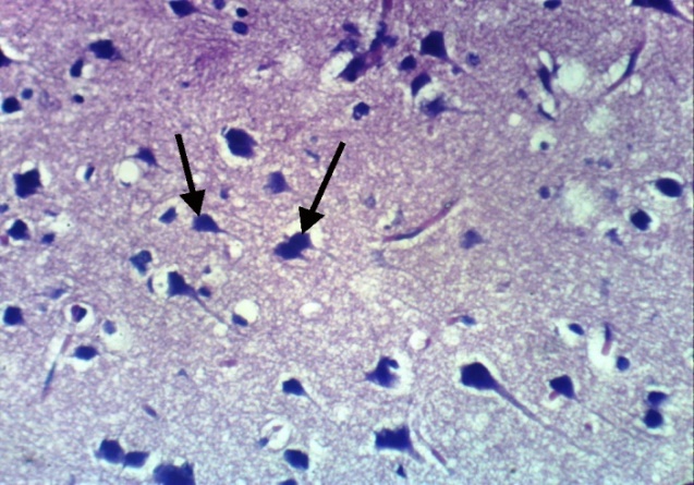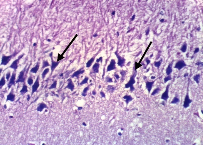 | Necrosis of pyramidal cells of hippocampus | - | ++ | + | + |