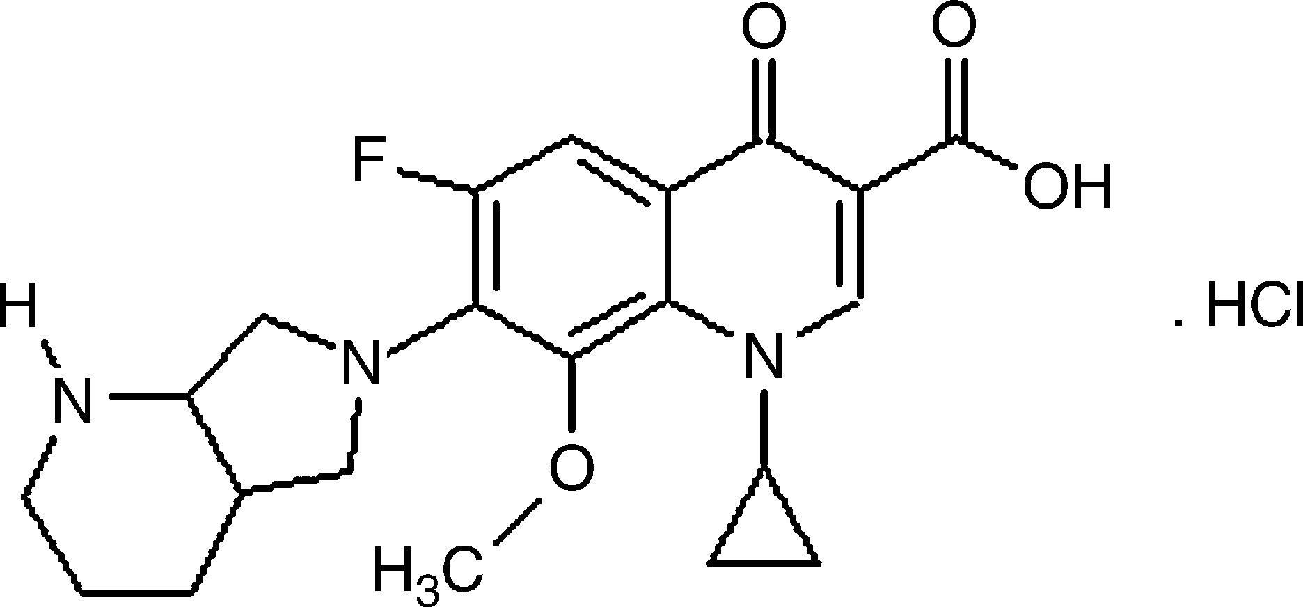 Moxifloxacin HCl is (4aS - cis) - 1 - Cyclopropyl - 6 - fluoro - 1, 4 - dihydro - 8 - methoxy - 7 - (octahydro - 6H - pyrrolol [3, 4 - b] pyridin - 6 - yl) - 4 - oxo - 3 - quinoline carboxylic acid monohydrochloride (Fig.1). Moxifloxacin hydrochloride (HCl) is a fourth-generation fluoroquinolone with a new 8-methoxy derivate of fluoroquinolones with enhanced activity in vitro against gram positive bacteria and maintenance of activity against gram negative bacteria. It is an anti-infective agent useful in the treatment of eye infection such as bacterial conjunctivitis, keratitis and keratoconjunctivitis. It is currently available as eye drops (0.5%). It is administered at dosing interval of 1 drop in the affected eye 3 times a day for 7 days [1-5].