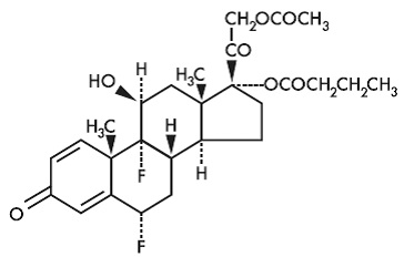 Difluprednate (difluoroprednisolone butyrate acetate or DFBA) is a synthetic difluorinated prednisolone derivative. The chemical name is 6α, 9difluoro-11β, 17, 21-trihydroxypregna-1, 4-diene-3, 20-dione 21-acetate 17-butyrate (Fig. 2) (CAS number 23674-86-4). Difluprednate 0.05% is indicated for the treatment of inflammation and pain associated with ocular surgery. [1-3, 6].