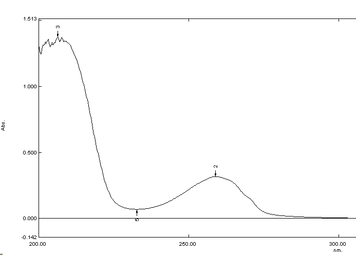 Suitable wavelength for the HPLC analysis was determined by recording UV spectrum in the range of 200-400 nm for Indinavir sulphate. Suitable wavelength selected was 220 nm (Figure 2).