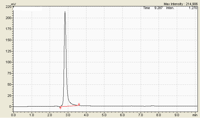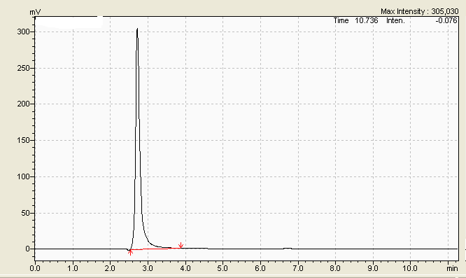Figures 3-5 for blank, standard drug solution and sample chromatogram reveal that the peaks obtained in the standard solution and sample solution at working concentrations are only because of the drugs as blank has no peak at the retention time of Indinavir sulphate. Accordingly it can be concluded that, the method developed is said to be specific.