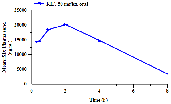 Fig.3: Mean plasma concentration vs. time following a single dose oral administration of RIF in male rats
