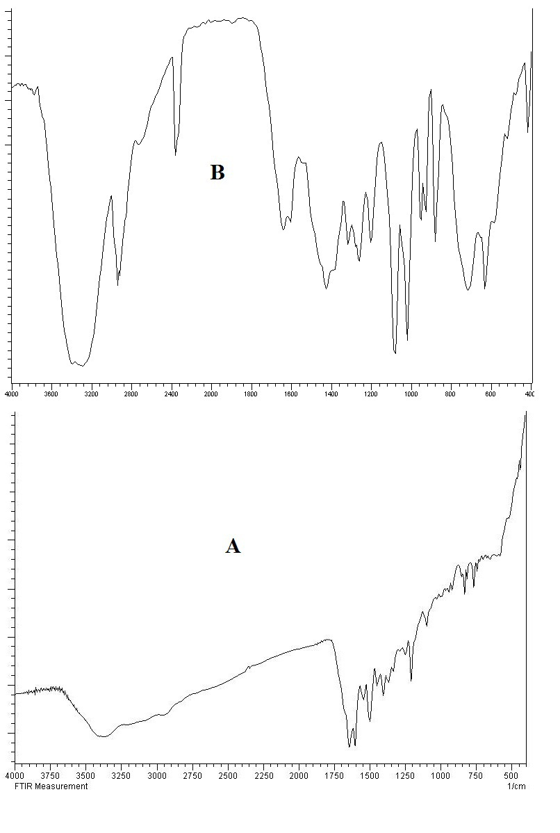 Fig. 1: FT-IR Spectra of pure Methotrexate (A) and Methotrexate-excipient physical mixture (B).