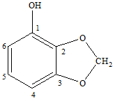 A two-proton broad singlet at δ 4.89 was attributed to di-oxygenated methylene,–O-CH2-O-, protons. Its 13C NMR spectrum displayed signals for aromatic carbons from δ 159.52 to 107.47, and di-oxygenated methylene carbon at δ 103.11. These spectral data led to formulate the structure of 3 as 2, 3-dioxymethylene phenol. This phytoconstituent is first time reported in P. marsupium.