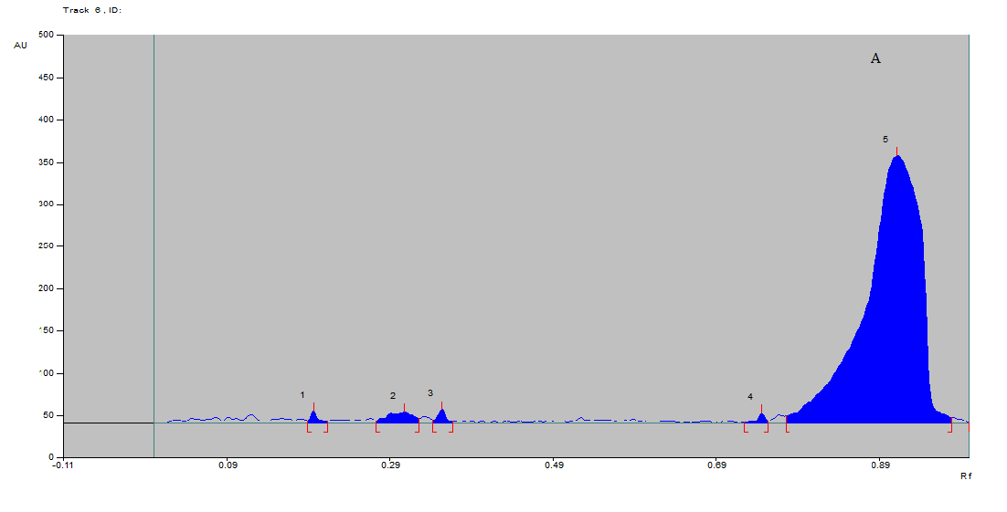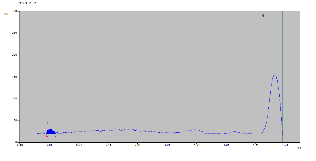 The mobile phase used during various analysis performed using HP-TLC was glacial acetic acid: n-butanol: ethanol: water (8:2:3:1) and the solvent used for dissolution of TMA was ethanol. The detection was performed using ultraviolet spectrometry at wavelengths 254 and 366 nm.
