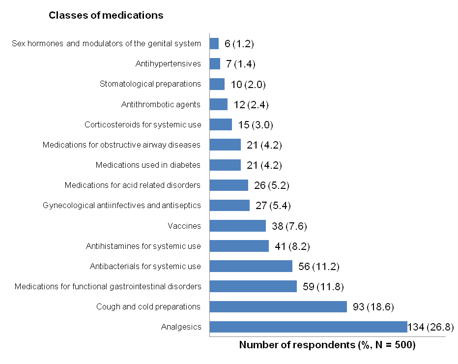 Fig. 1: Classes of medications used by more than 1% of the respondents
