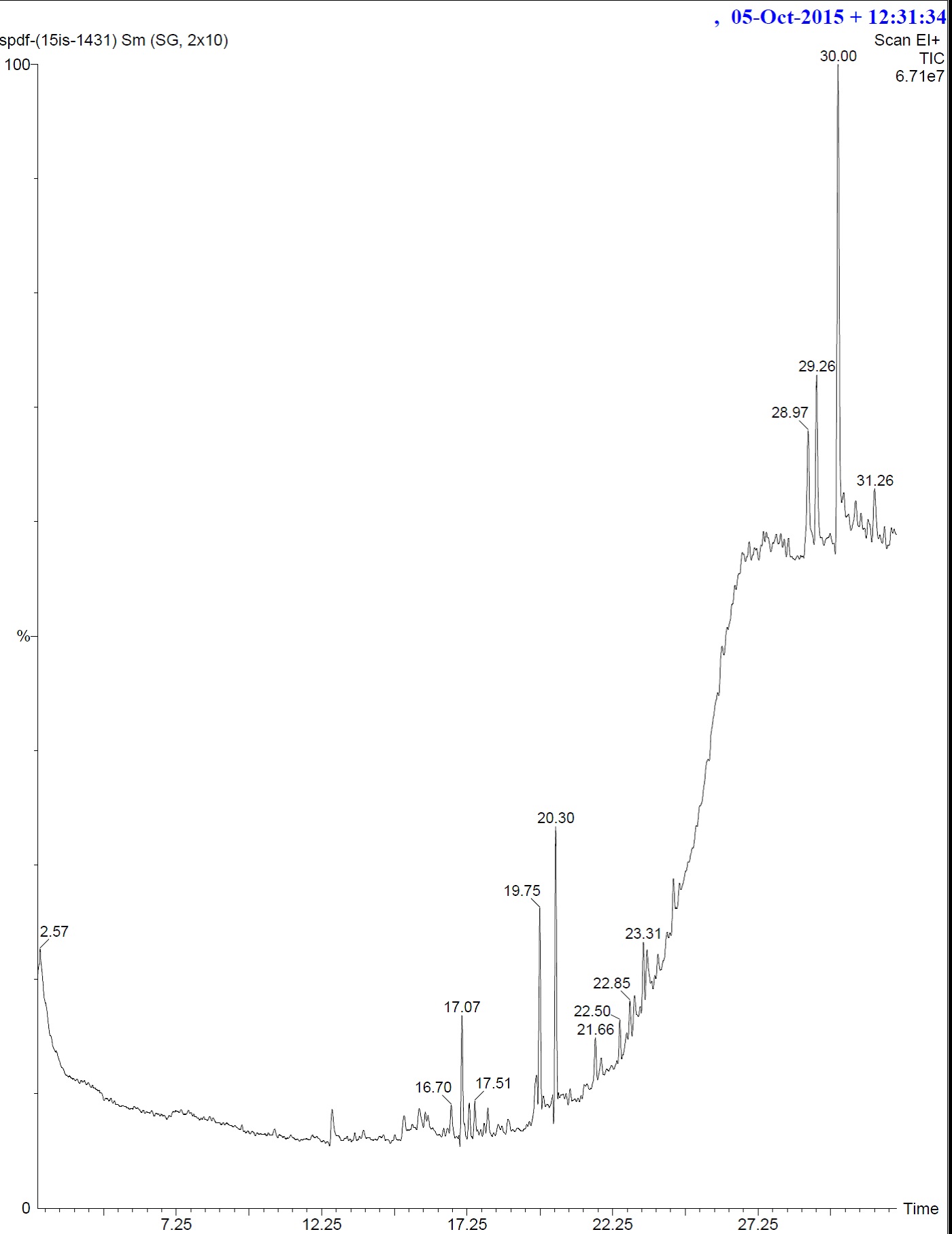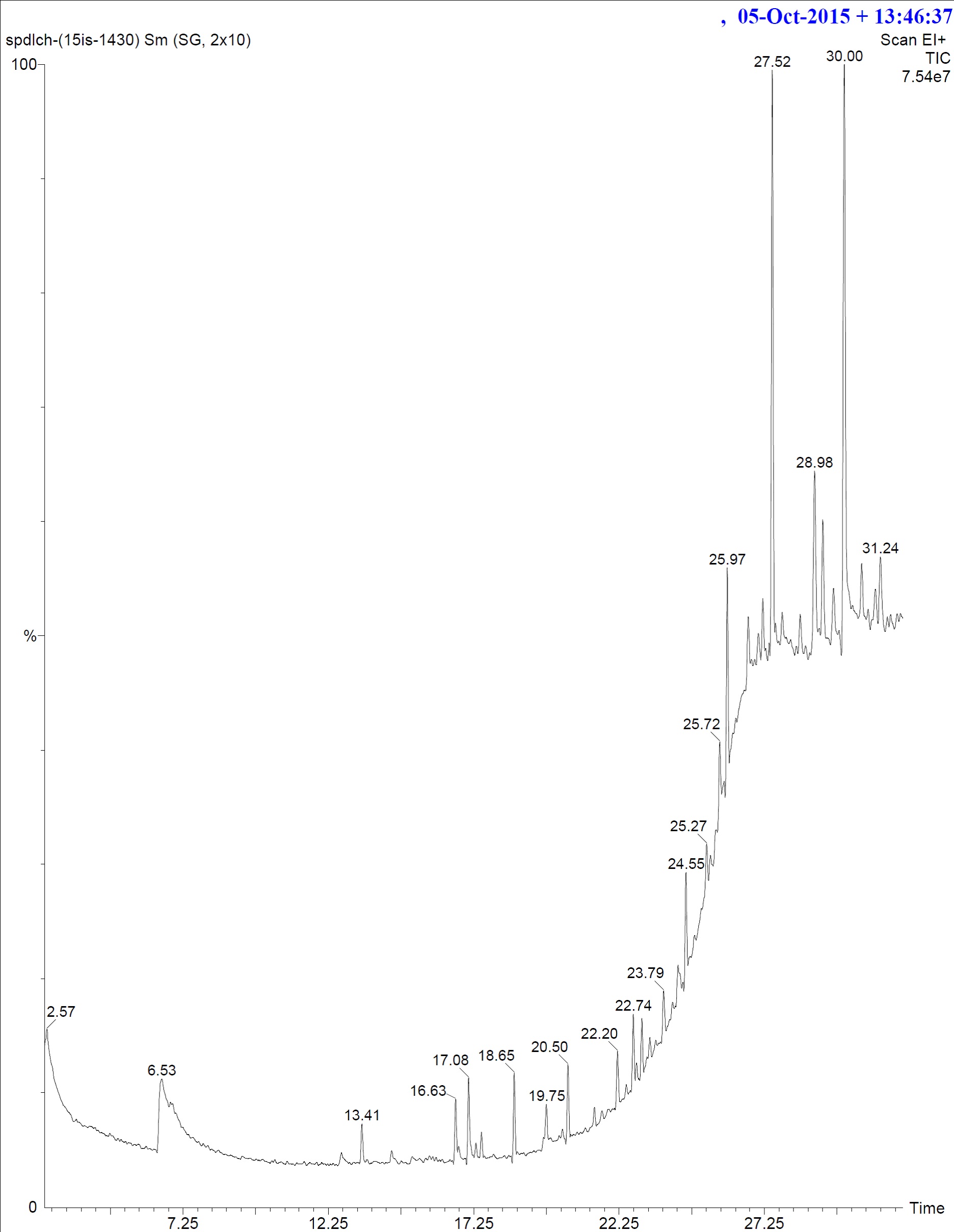 Fig. 5: GC-MS chromatogram of chloroform extract of S. suaveolens flower