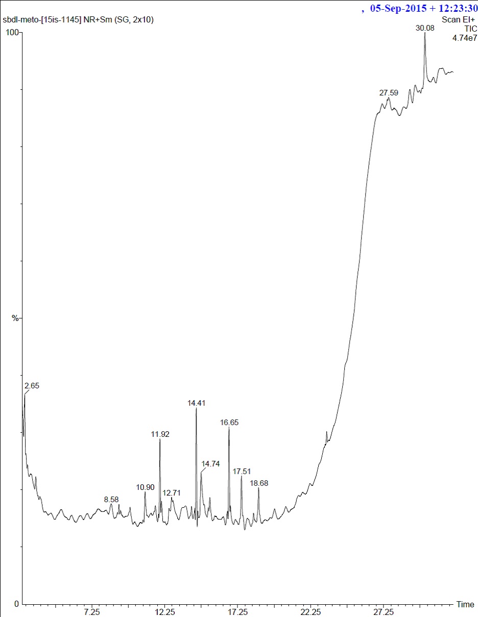 Fig. 7: GC-MS chromatogram of methanolic leaf extract of S. suaveolens leaf