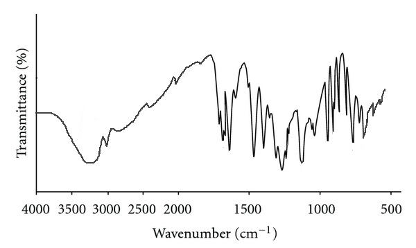 The spectra of TKP shows a broad band in the region 3590–3160 cm-1 due to -OH stretching. The peak at 2944 cm-1 is attributed to C–H stretching vibration. A strong and sharp peak at 1640 cm-1 is due to O–H bending and the variable peak at 1580–1450 cm-1 is attributed to C–H bending. A strong peak in the region 1285–1070 cm-1 denotes C–O stretching vibrations.