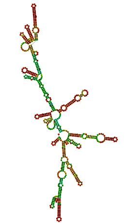 Fig. A: Shows RNA Secondary structure of Bacillus licheniformis strain 018 with minimum free energy of -247.40 kcal/mol
