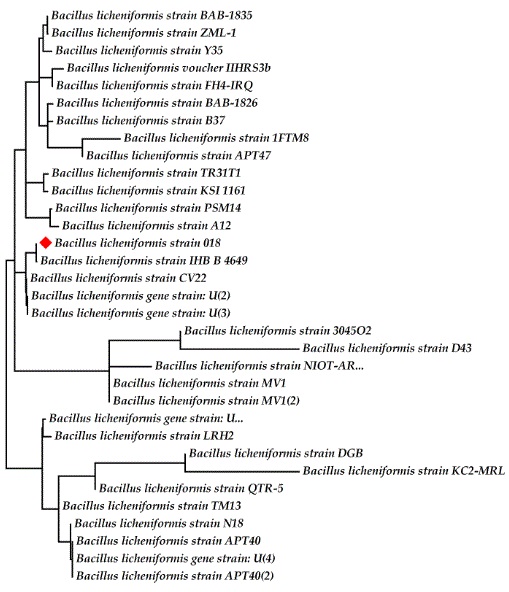| B. licheniformis strain 018 | Zero | Zero | None |