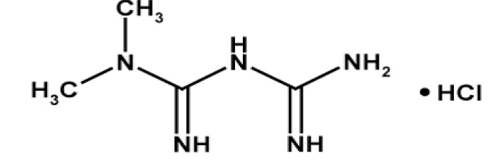 Metformin HCl [fig. 2] chemically 3-[diaminomethylidene]-1,1-dimethylguanidine HCl is an orally administered biguanide widely used in the treatment of type 2 [non-insulin dependent] diabetes mellitus [5-6].