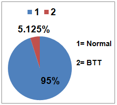 DF2 and DF4 were significantly low in BTT when compared to controls while DF1 and DF3 were slightly lower in BTT than the healthy controls. DF5 is slightly elevated in BTT when compared to controls (table 2).