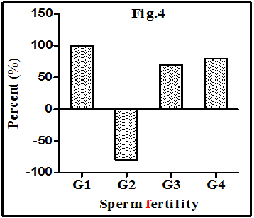 Control rats showed 100% positive fertility by mating exposure test. The rats administered with dichlorvos at 20 mg/kg. b. wt./day dose level showed 80% negative fertility whereas co-administration of Z. officinale with dichlorvos exhibited 70% and 80% positive fertility as compared to control group (fig. 4).