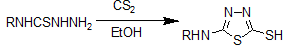 Method 2. 1,3,4-thiadiazole-2-thiol were prepared by cyclization of arylthiosemicarbazide with carbondisulphide.
