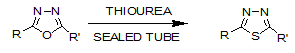 Method 4. In order to improve the yield and purity of the products, easy isolation or work up; researchers developed the new synthetic strategies, innovative methods, new reagents for the synthesis of thiadiazoles. Thiourea is introduced as a new reagent for the direct conversion of 2.5-diaryl- 1,3,4-oxadiazole to 2.5-diaryl-1,3,4-thiadiazole. In order to reduce the reaction time and to increase the yield, reaction is carried out in a sealed tube at water bath temperature for 10-15 hr.