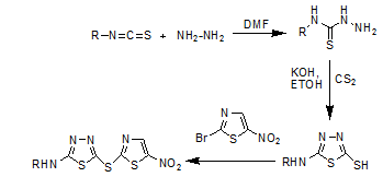 The 1,3,4-thiadiazole can be constructed with substituted esters and isothiocyanates. The 1,3,4-thiadiazole bearing substituents at 2 and 5 position have been prepared by using different procedures: