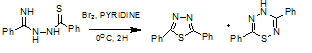 Method 8. The cyclization of N’-imidoylthiohydrazide with bromine in the presence of pyridine gave 2,5-diphenyl-1,3,4- thiadiazole along with the 3,6-diphenyl-4H-1,2,4,5-thiatriazine.