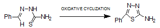 Method 9. Oxidative cyclization of thioacylhydrazone by common oxidants include bromine, ferric chloride, ammonium ferric sulfate, or potassium permanganate provided 2-amino-5-phenyl-1,3,4-thiadiazole.