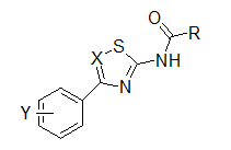 Different scientist groups have worked upon QSAR of thiazole/thiadiazole nucleus and obtained interesting results. Bhattacharya et al studied binding affinity data of thiazole and thiadiazole derivatives for human adenosine A3 receptor subtype using quantum chemical and hydrophobicity parameters. The results suggested the A3 binding affinity increases with decrease of lipophilicity of the compounds (Fig. 12) and in the presence of methyl or ethyl substituent at R position. Furthermore, thiadiazole nucleus is more preferred over thiazole nucleus for the binding [5].