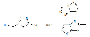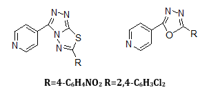 A series of 6-substituted-1,2,4-triazolo-[3,4-b]-1,3,4-thiadiazole and 1,3,4-oxadiazole derivatives of isoniazid were synthesized by Gilani et al and pharmacologically evaluated for their in-vitro antimicrobial activity (Fig. 54). All the synthesized compounds were in good agreement with elemental and spectral data. A majority of the tested compounds showed good to moderate antimicrobial activity against all tested pathogenic bacterial and fungal strains [50].