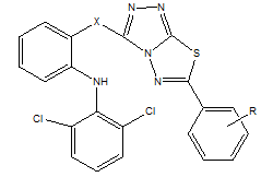 Several 3,6-disubstituted-1,2,4-triazolo-[3,4-b]-1,3,4-thiadiazoles were prepared by Mohd. amir et al. These compounds (Fig. 39) were investigated for their anti-inflammatory, analgesic, ulcerogenic, lipid peroxidation, antibacterial and antifungal activities. Some of the synthesized compounds showed potent anti-inflammatory activity along with minimal ulcerogenic effect and lipid peroxidation, compared to those of ibuprofen and flurbiprofen [35].