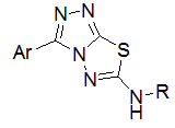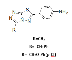 A new series of 3,6-disubstituted triazolo-[3,4-b]-thiadiazole derivatives has been synthesized by Ibrahim et al. The newly synthesized compounds (Fig. 23) were evaluated for their cytotoxic activity against a panel of 60 human cancer cell lines. Many of the compounds demonstrated moderate to high inhibitory effects on the growth of a wide range of cancer cell lines generally at 10-5 M level and in some cases at 10-7 M concentrations. One Compound exhibited the highest sensitivity against renal, colon and melanoma cancer cell lines, the best results being against Renal cancer cell line with log GI50 -7.27 [16].