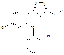 Several novel 2-amino-5-[4-chloro-2-(2-chlorophenoxy)-phenyl]-1,3,4-thiadiazole derivatives were synthesized by Foroumadi et al and their anticonvulsant activity was determined by evaluation of the ability of these compounds (Fig. 30) to protect mice against convulsion induced by a lethal doses of pentylentetrazole (PTZ) and maximal electroshock (MES). The result of anticonvulsant data showed some of the compounds as most active compounds [25].