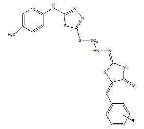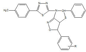 An attempt was made to utilize the concept of bio-isosterism for the synthesis to afford novel fused thiadiazole, thiadiazine compounds by Sivasubramanian et al. The novel synthesized compounds were characterized by MP, IR, 1H NMR spectra. These synthesized compounds were subjected to anti-microbial and anti cancer studies. All the synthesized compounds in the present study showed significant activity against microbes when compared with that of ampicillin and ketoconazole as standards. Synthesized compounds (Fig. 14) were found to exhibit moderate cytotoxicity activities in all cell lines [7].