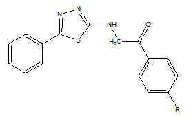 Shakya et al synthesized Some new N-substituted acetyl derivatives of 2-amino-5-alkyl-1,3,4-thiadiazoles and investigated for antihistaminic and spasmolytic activity on guinea pig ileum. In the studies of the effect of the compounds (Fig. 37) on isolated organs all the compounds showed antihistaminic activity as expected, and all showed competitive antagonism towards histamine. IC50 value of all the compounds ranged between 1.20 x 10-7 to 4.15 x l0-7 mol/l. one of the compound was found to be very potent with IC50 value of 5.68 xl0-8 mol/l. The introduction of 1,3,4-thiadiazoles nucleus in structure -NH-CO-CH,-N< showed anti-inflammatory activity in addition to antihistaminic and spasmolytic activity in a few compounds [33].