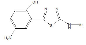 Various 1,2,4-Triazole and 1,3,4-Thiadiazole Derivatives of 5-Amino-2-Hydroxybenzoic Acid were synthesized by Hussain et al and evaluated for their antibacterial and antifungal activity (Fig. 58). The compounds showed significant antibacterial activity against S. aureus (gram-positive) and E.coli (gram-negative) bacteria and antifungal activity against A. niger fungi using cup plate technique [54].