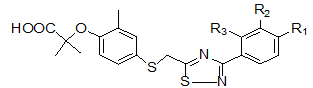 The peroxisome proliferator-activated receptors (PPARs) belong to the nuclear hormone receptor superfamily and consist of three members, PPARα, PPARβ, and PPAR ƍ. PPAR α is expressed mainly in tissues involved in lipid oxidation such as liver, kidney, adrenal glands, cardiac muscle, and skeletal muscles. PPARα regulates the expression of genes involved in lipid metabolism. Shen et al synthesized some [1,2,4]-thiadiazole derivatives (Fig. 62) to give compounds which unexpectedly displayed submicromolar potency as a partial agonist at PPARα in addition to the high potency at PPAR ƍ. A structure–activity relationships study of the compounds resulted in the identification of a potent and selective PPAR α/ ƍ dual agonist [58].