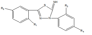 Some new derivatives of 2,4-diphenyl-5-imino-Δ2-1,3,4-thiadiazole were prepared by Asif et al. The structures of the compounds (Fig. 67) were elucidated by IR, 1H-NMR and elemental analysis. Antinociceptive activity was evaluated using in vivo tests, by means of the hot plate method and found that all the compounds exerted a lesser antinociceptive effect compared to acetylsalicylic acid [63].